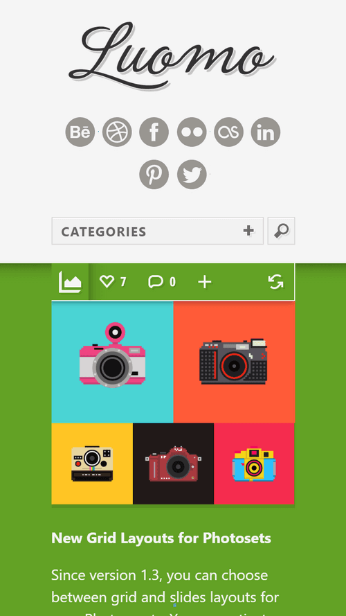 Luomo is a responsive and expressive theme for Tumblr, carefully designed to present your content with style. With Luomo, you can tailor each post so background and text colors compliment your content flawlessly. Luomo is responsive and retina-ready—looks great and sharp on all devices.